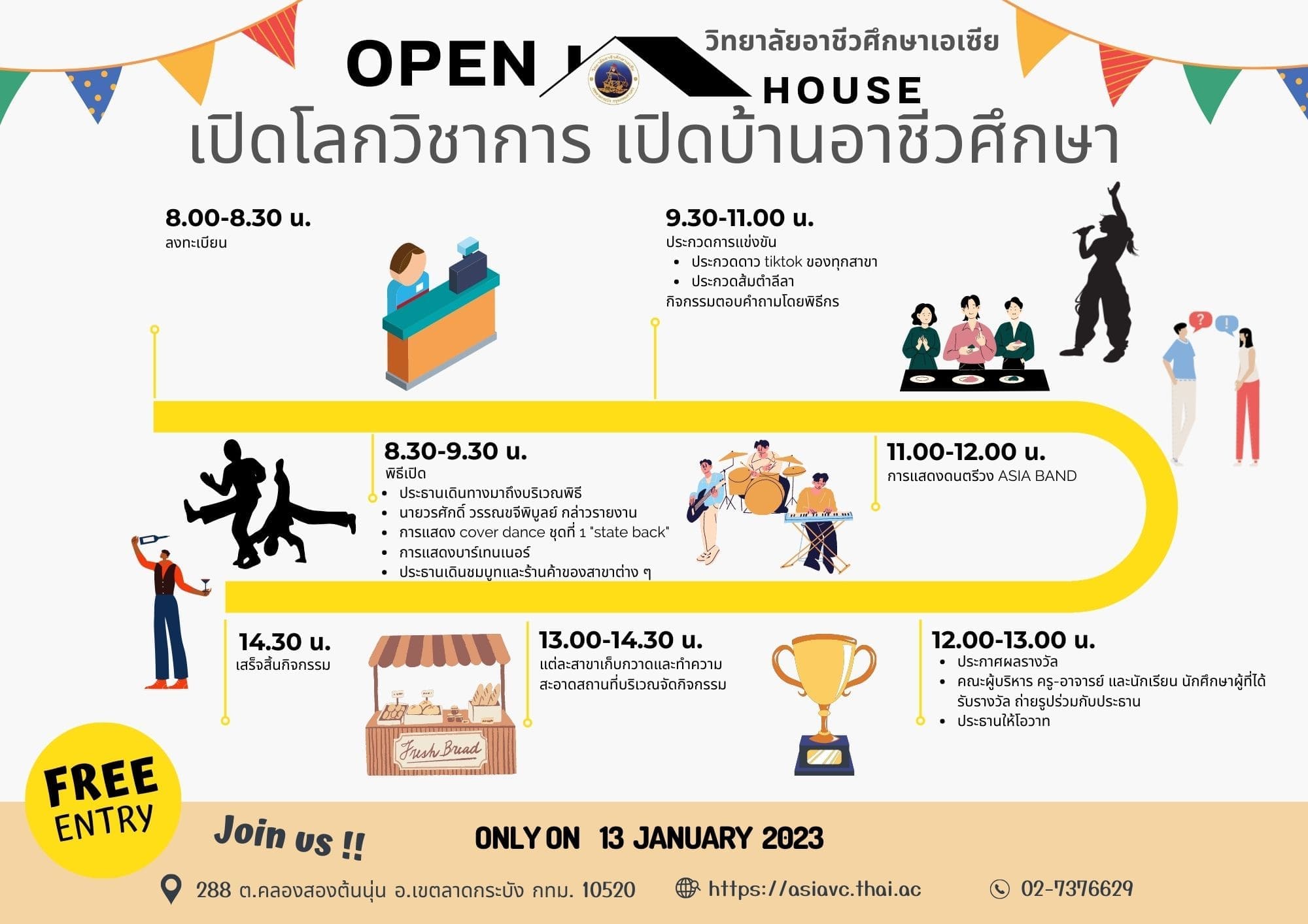 วิทยาลัยอาชีวศึกษาเอเซีย ขอเชิญชวนนักเรียน นักศึกษาเข้าร่วมกิจกรรมเปิดโลกวิชาการ เปิดบ้านอาชีวศึกษา ประจำปีการศึกษา 2565 ในวันศุกร์ที่ 13 มกราคม 2566