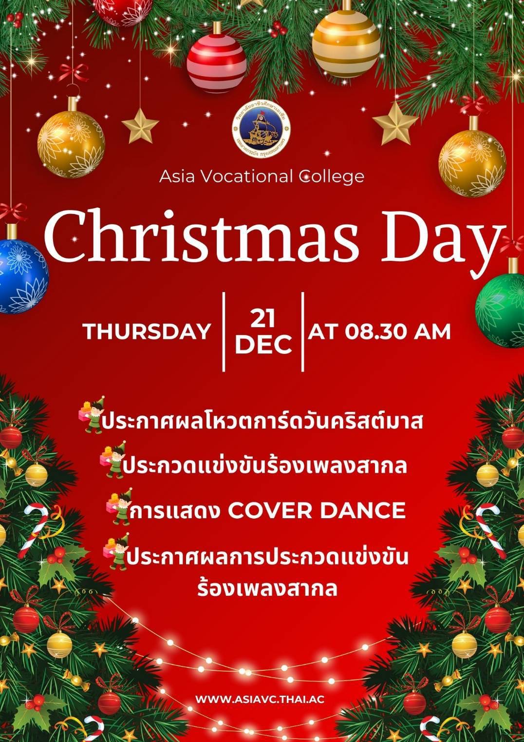 Christmas Day 2023 วิทยาลัยอาชีวศึกษาเอเซีย ขอเชิญชวนนักเรียน นักศึกษาเข้าร่วมกิจกรรมวันคริสต์มาส และ วันภาษาอังกฤษ ปีการศึกษา 2566
