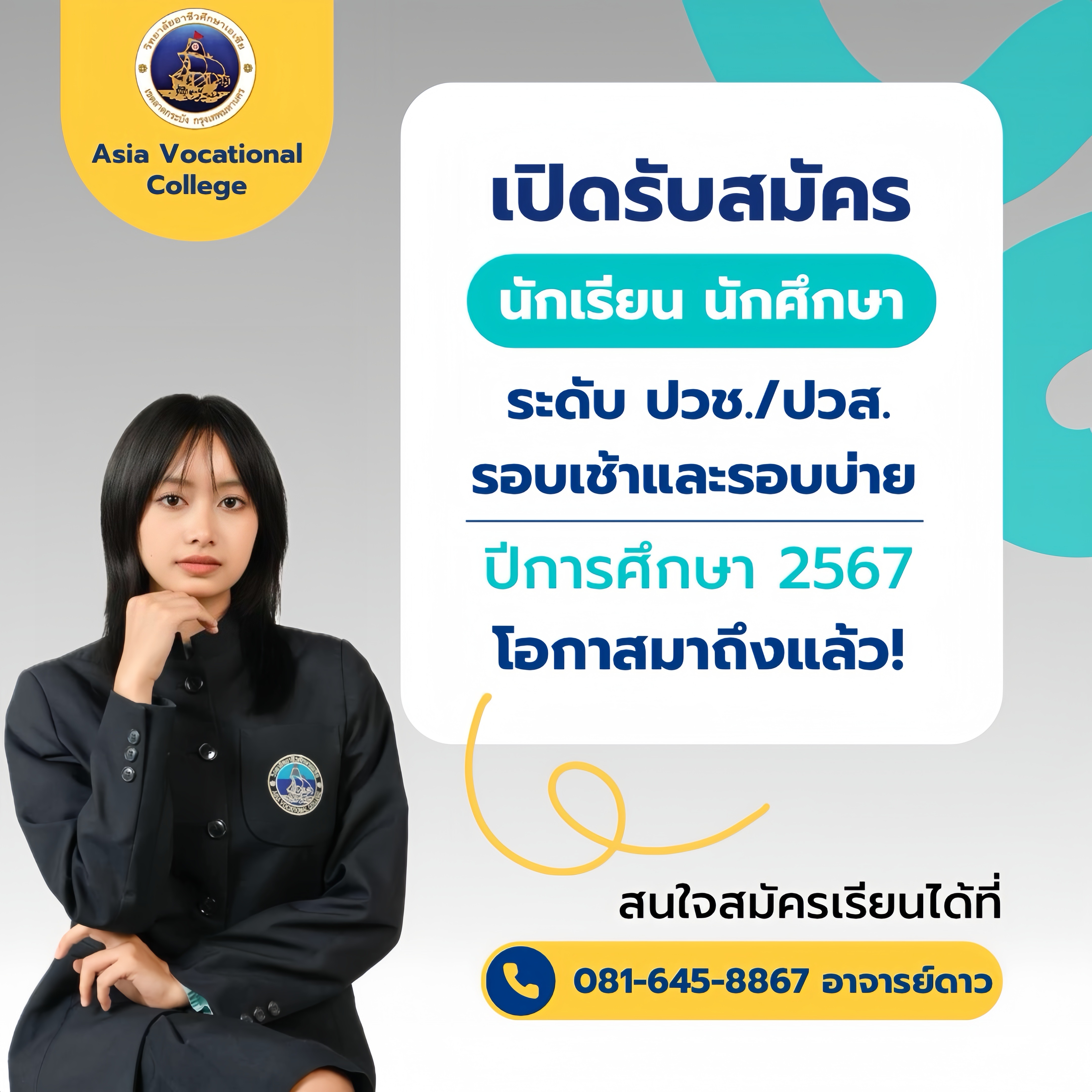 วิทยาลัยอาชีวศึกษาเอเซีย [Asia Vocational College] เปิดรับสมัครนักเรียนนักศึกษา ปีการศึกษา 2567