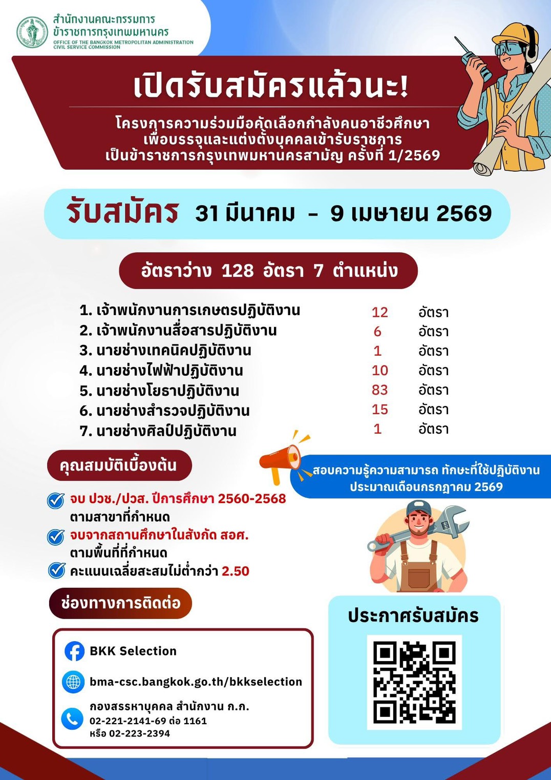เปิดรับสมัครแล้วนะ! โครงการความร่วมมือคัดเลือกกำลังคนอาชีวศึกษา เพื่อบรรจุและแต่งตั้งบุคคลเข้ารับราชการ เป็นข้าราชการกรุงเทพมหานครสามัญ ครั้งที่ 1/2569