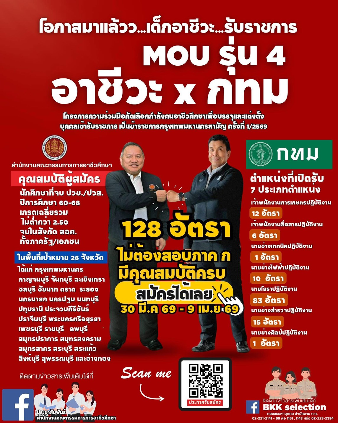 เปิดรับสมัคร 128 อัตรา หลายตำแหน่งทั่วประเทศ รับสมัคร: 31 มีนาคม - 9 เมษายน 2569