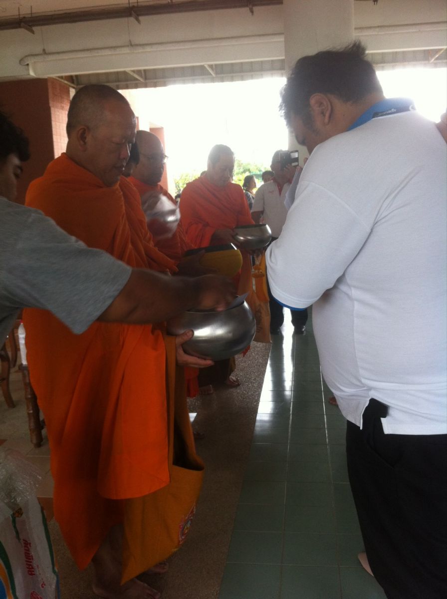 ในวันพระ ผู้บริหาร อาจารย์ นักเรียน นักศึกษาวิทยาลัย ทำบุญตักบาตร