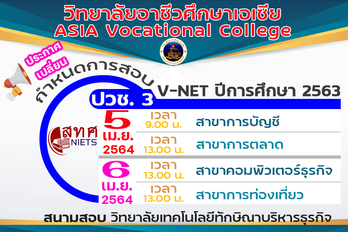 ประกาศเปลี่ยนวันสอบ V-NET ประจำปีการศึกษา 2563