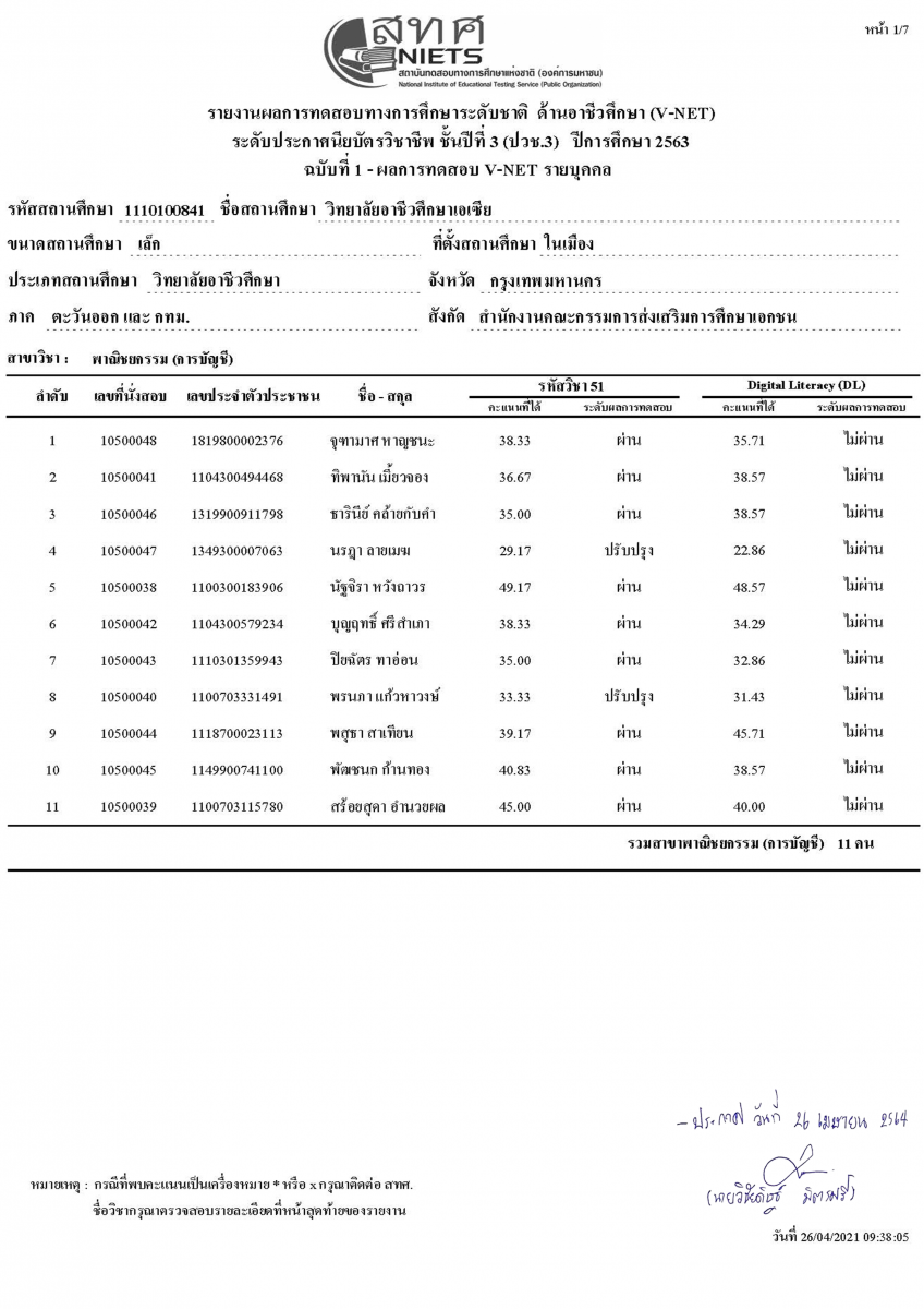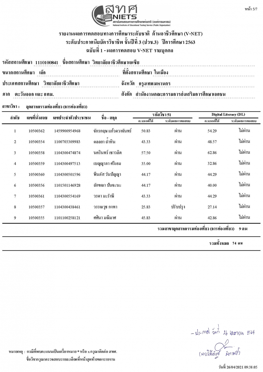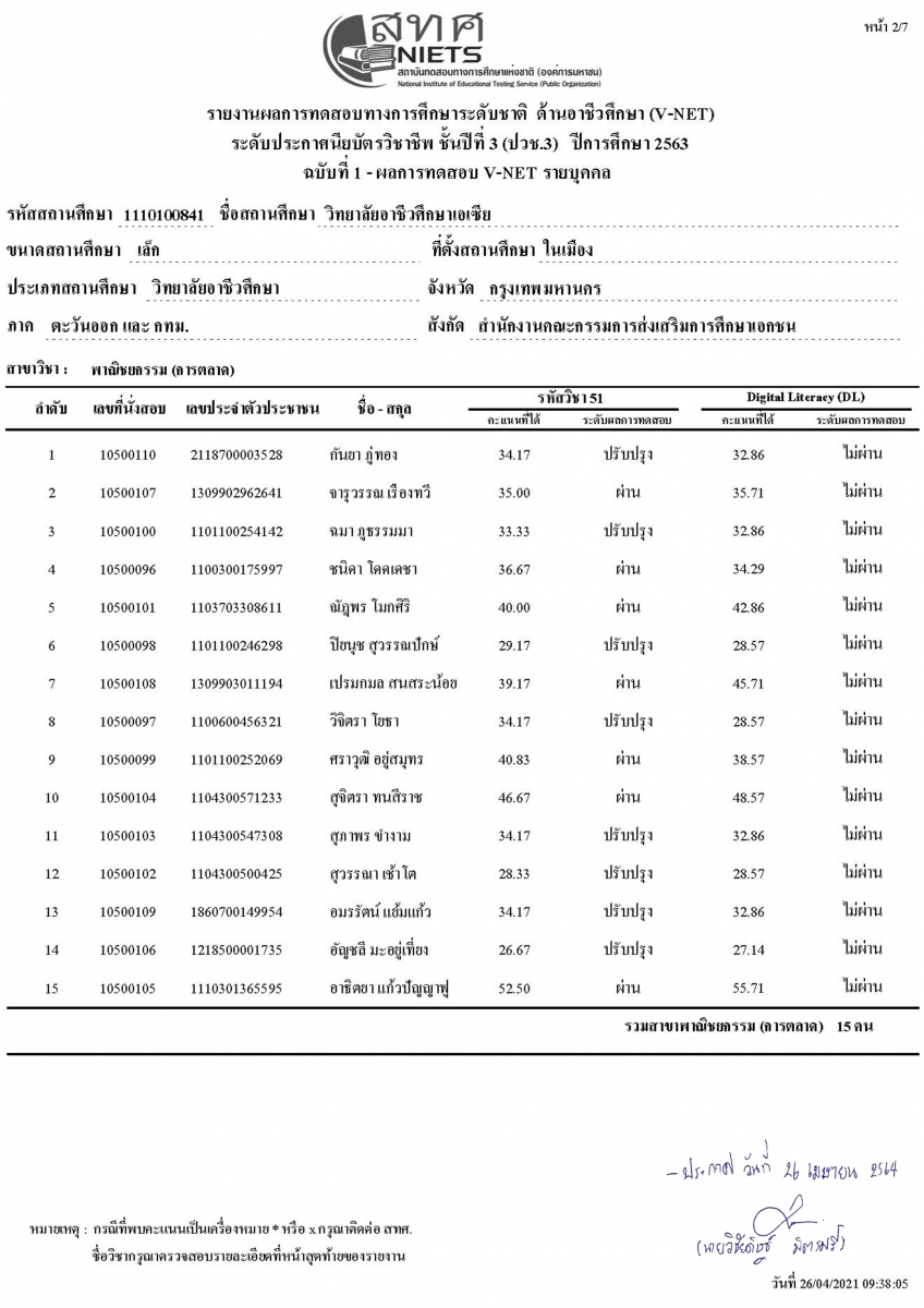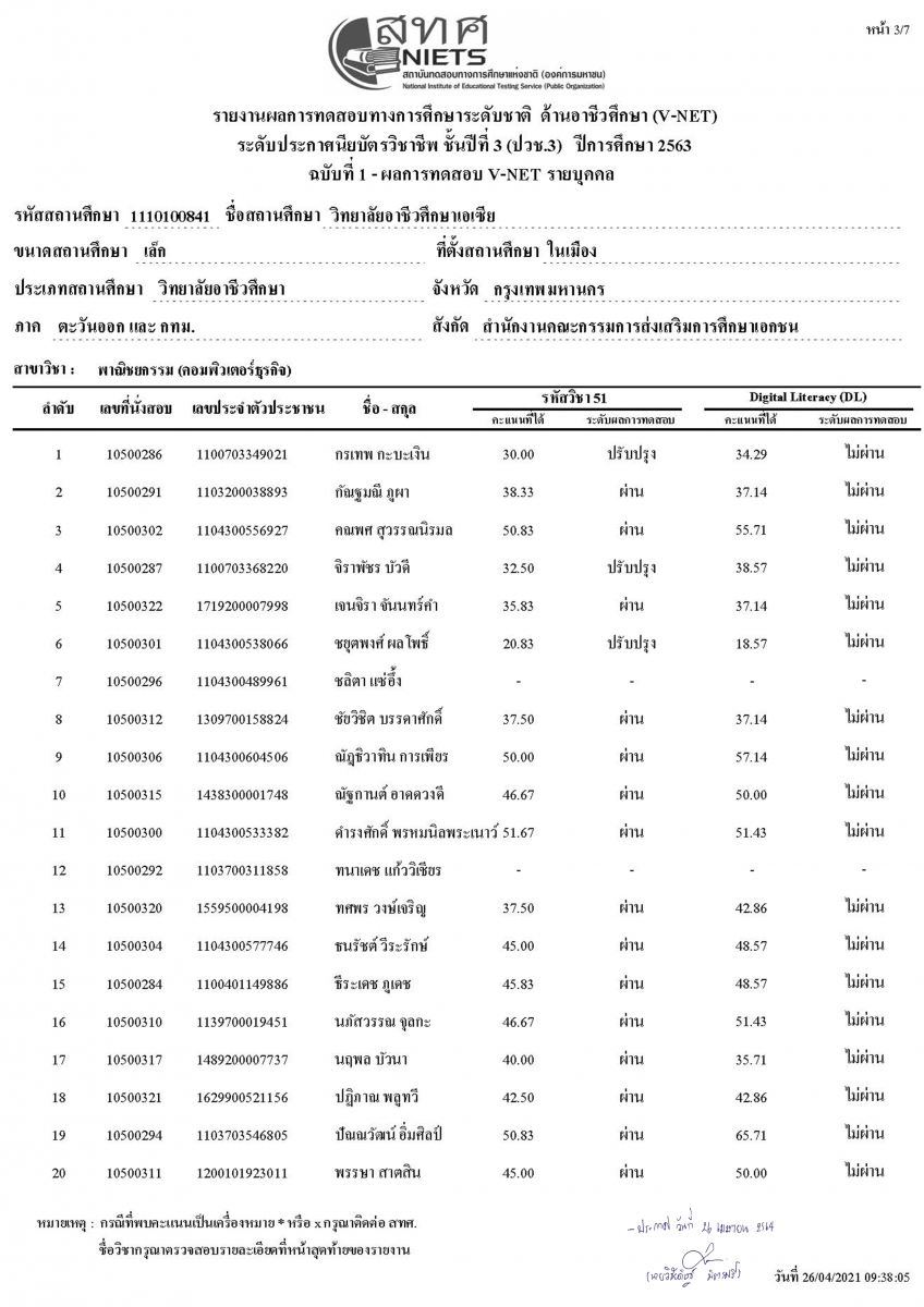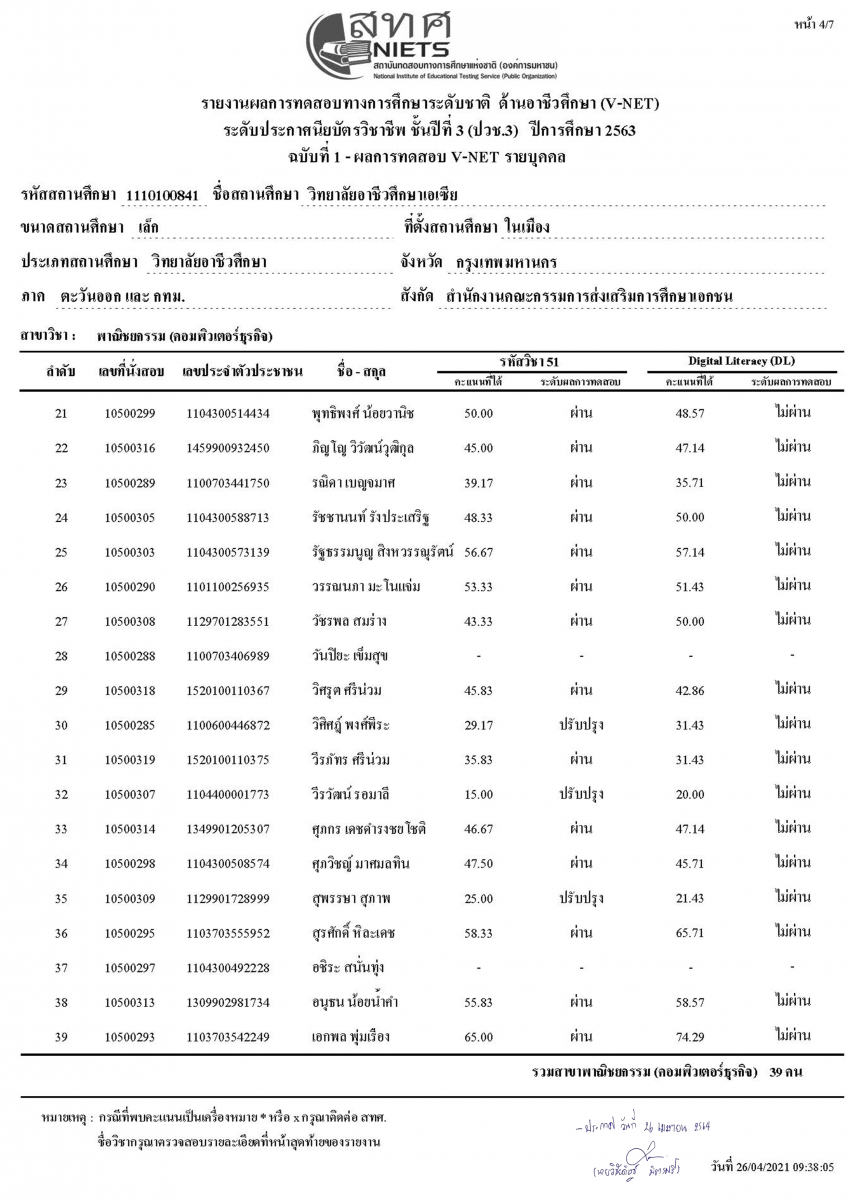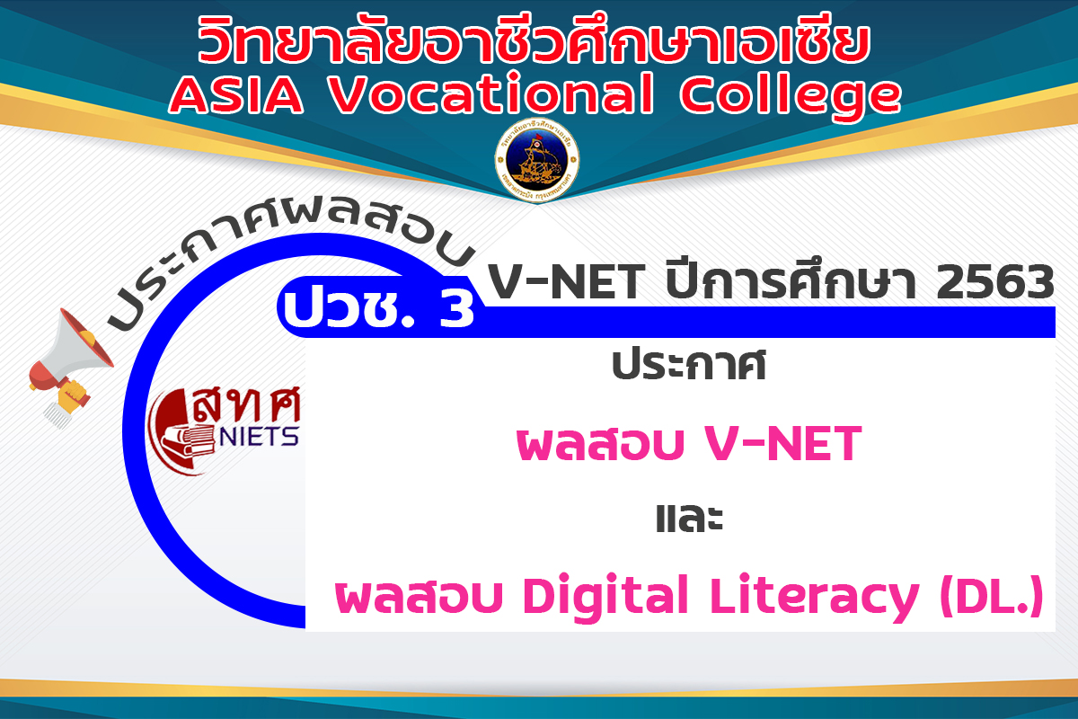 ประกาศผลสอบ V-NET และ Digital Literacy (DC.) ประจำปีการศึกษา 2563