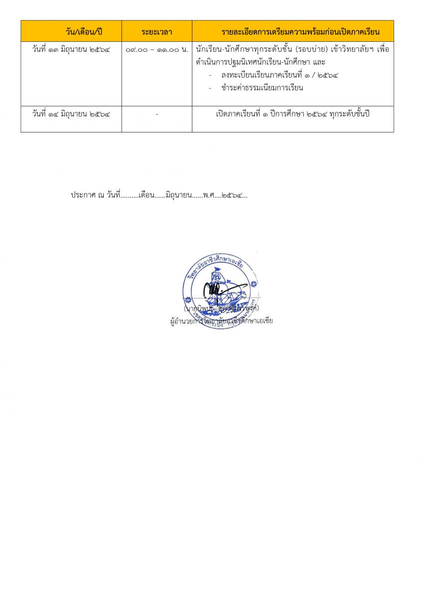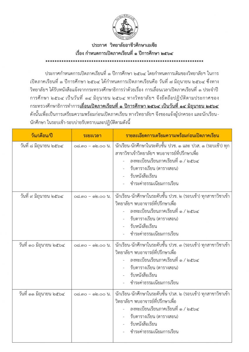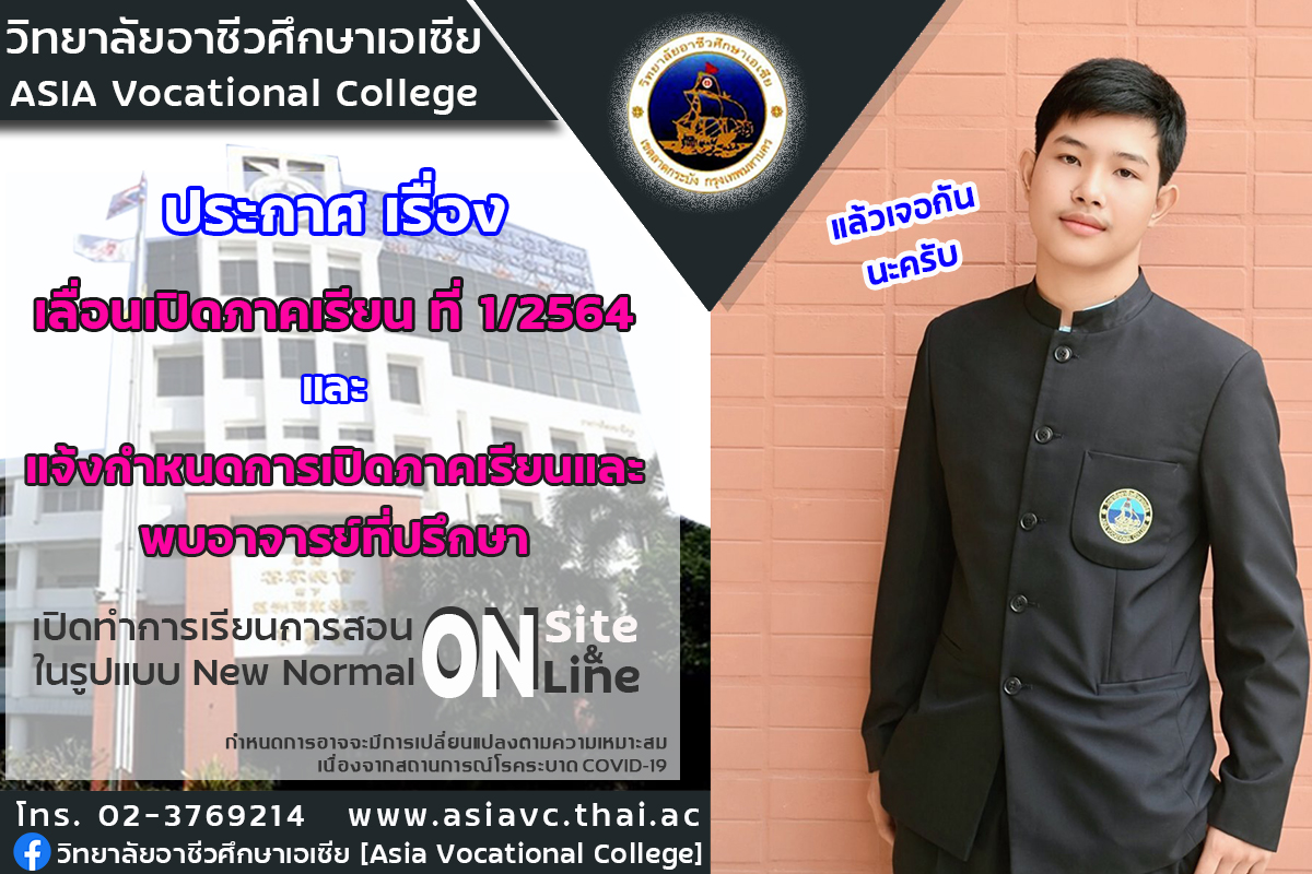 ประกาศ เรื่อง เลื่อนเปิดภาคเรียนที่1/2564 และ แจ้งกำหนดการเปิดภาคเรียนและพบอาจารย์ที่ปรึกษา