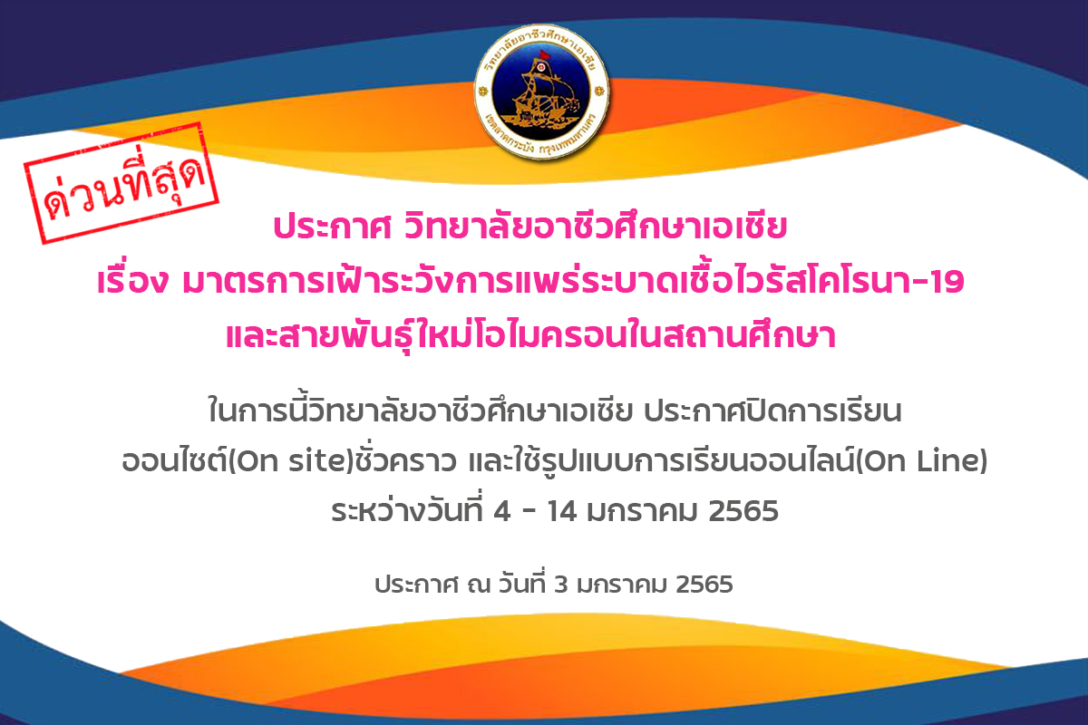 ประกาศ เรื่อง มาตรการเฝ้าระวังการแพร่ระบาดเชื้อไวรัสโคโรนา-๑๙ และสายพันธุ์ใหม่โอไมครอน ในสถานศึกษา