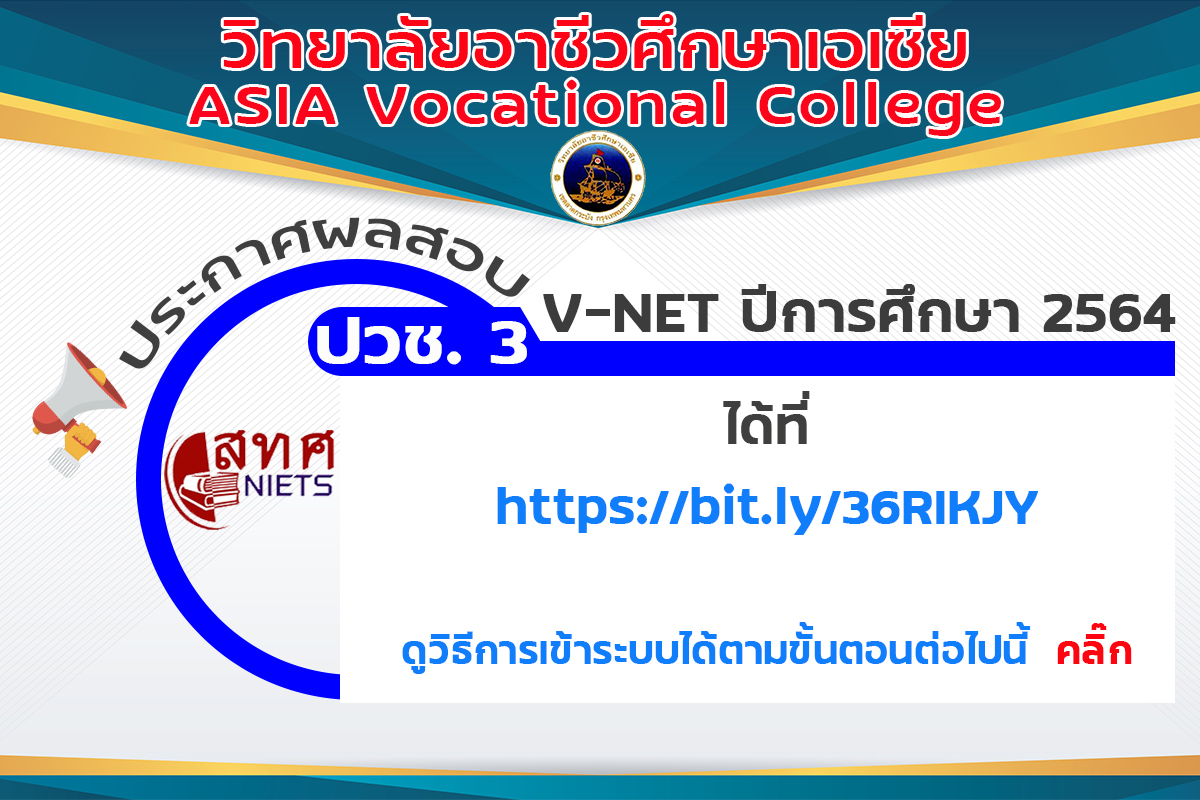 ประกาศผลการสอบ V-NET ระดับ ปวช.3 ปีการศึกษา 2564